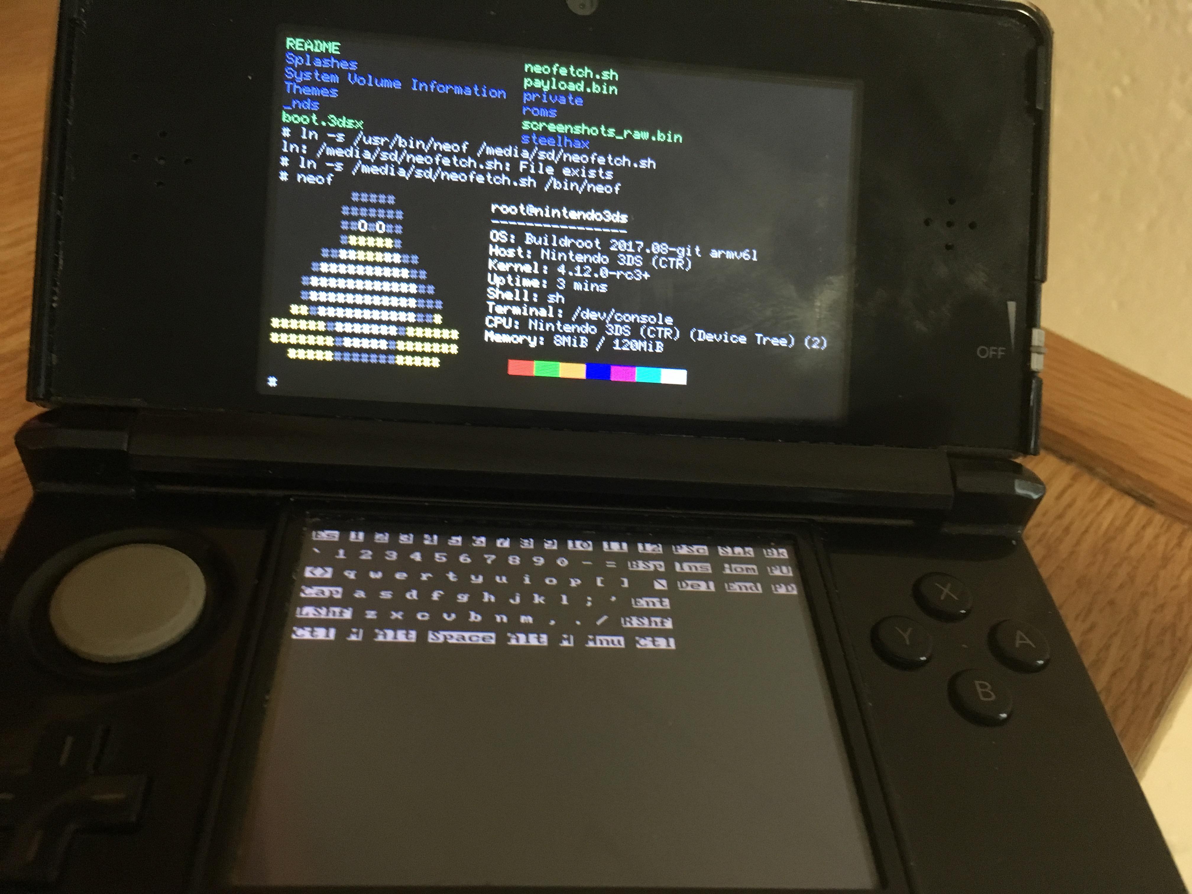 In more general terms learning how to “hack” these systems will give you a great amount of knowledge that can come in handy in other scenarios. The ability to understand how something truly works so you can change its behavior is one of the skills that separates normal computer scientists from top computer scientists. Below is a picture of a Nintendo 3DS running Linux